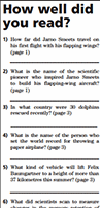 | How well did you read?: This global exercise on page ten asks general questions about topics that appear throughout the issue. It can be used either as an oral exercise to encourage speaking among the students, or as a review of an individual’s contextual reading and comprehension. | |