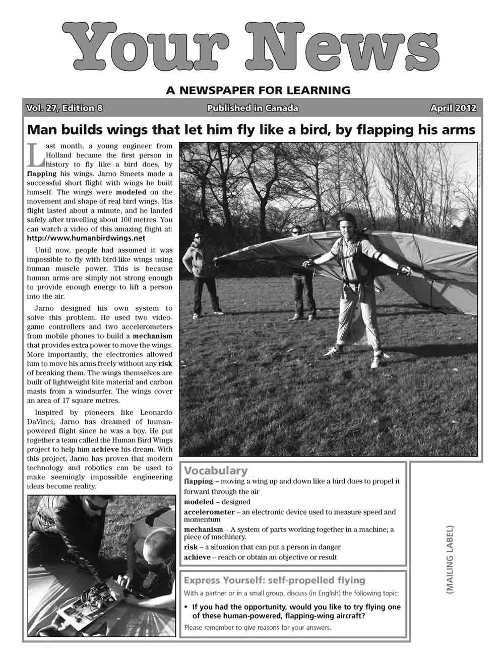 These are just a few of the features you will find in Your News. Students appreciate a learning tool that includes colorful graphics, appealing articles, and lively activities that keep them engaged. Your News provides all of this in one convenient, easy-to-use package. Try it. You and your students will like it.